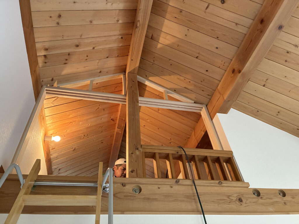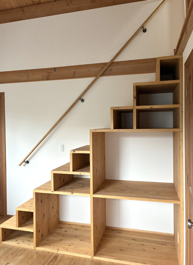 暮らしていく中で、必要なものが見えてくることもありますね。大きな棚の取り付けは、柱を狙ったり下地が必要な場合もあります。迷った時は、お気軽にご相談ください。