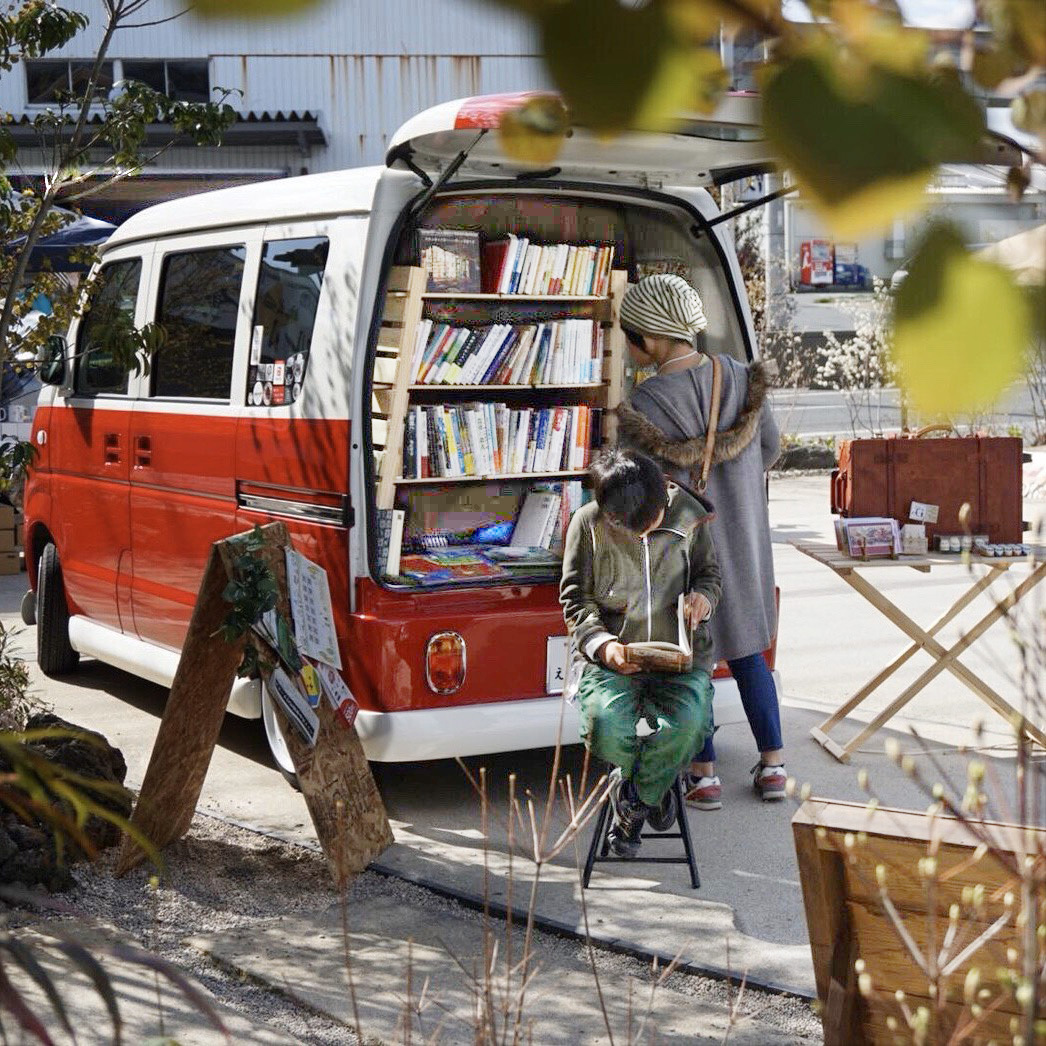 ワーゲンバスの移動式書店「るーこぼん」がやかまし村のギャラリーに