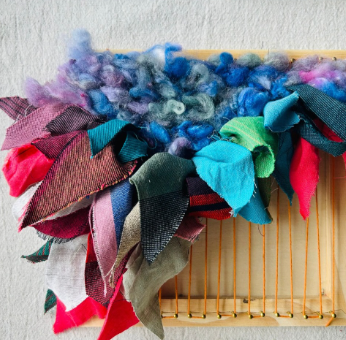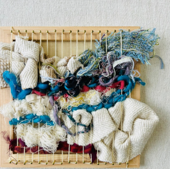 20㎝角のフレーム織り機に糸や布などを入れて、オリジナルのインテリアに♪お気軽にご参加ください。