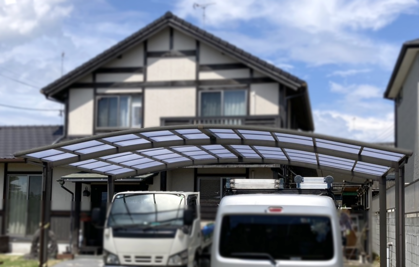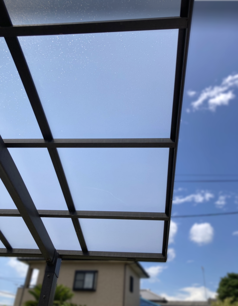 カーポートの屋根のパネルに、割れやひびが生じたため、破損が広がる前に新しいパネルと交換しました。