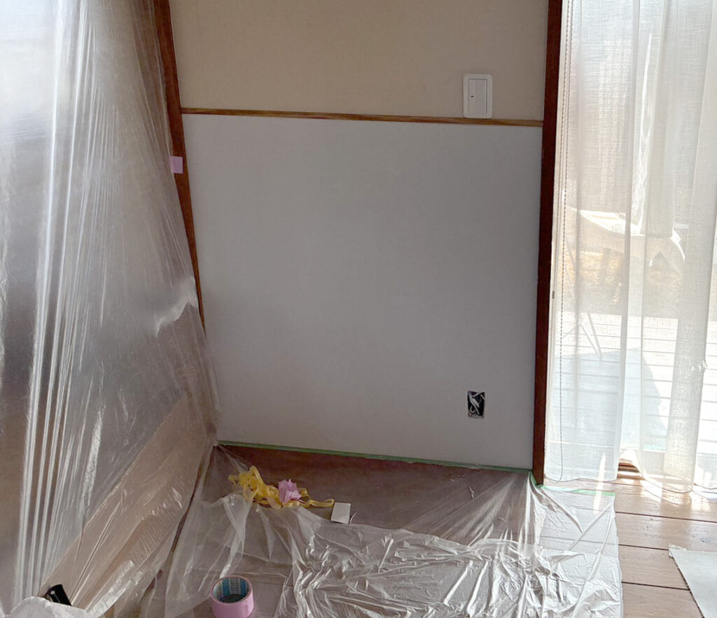 少しへこんだ壁を改修するにあたり、どうせならやるならマグネットがくっつく黒板にしたら楽しそう!ということで、