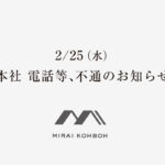 2/25(水) 久留米本社 電話など不通のお知らせ