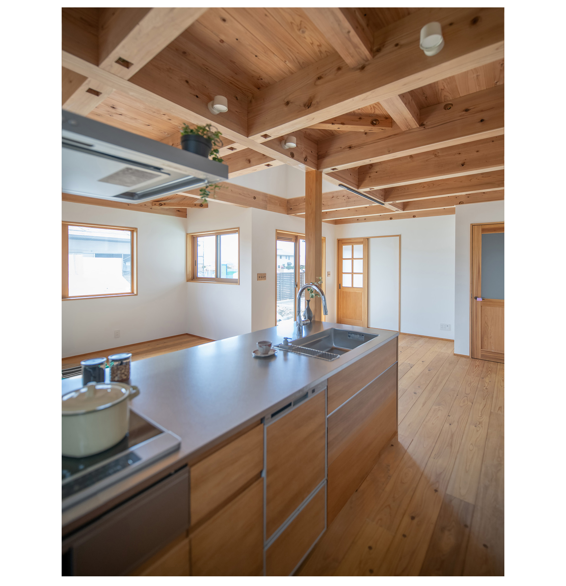 家の真ん中のダイニングキッチンに、家族が集う我が家です。