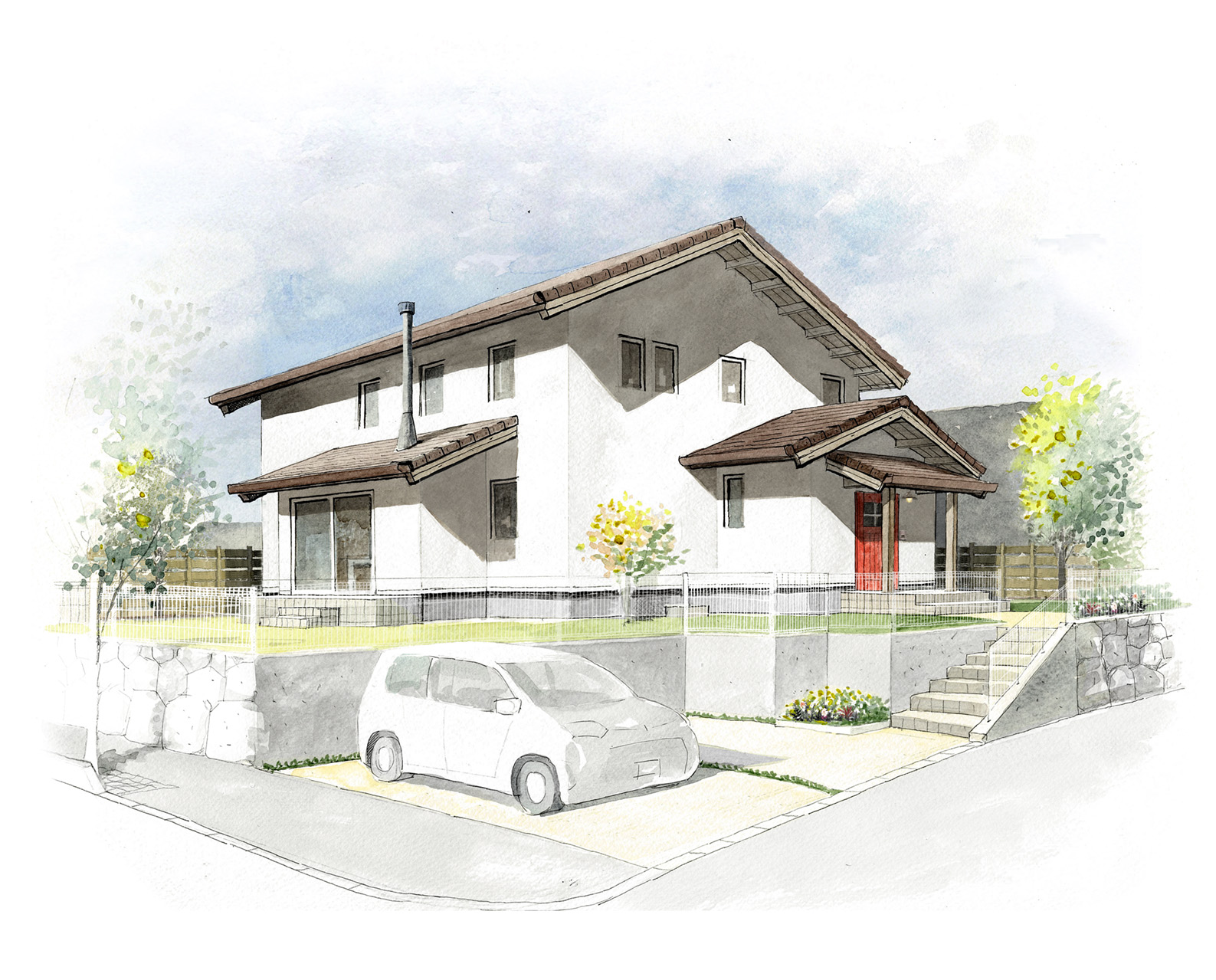 敷地の特徴である高低差をいかして外からの目線を遮る設計の工夫は必見です。