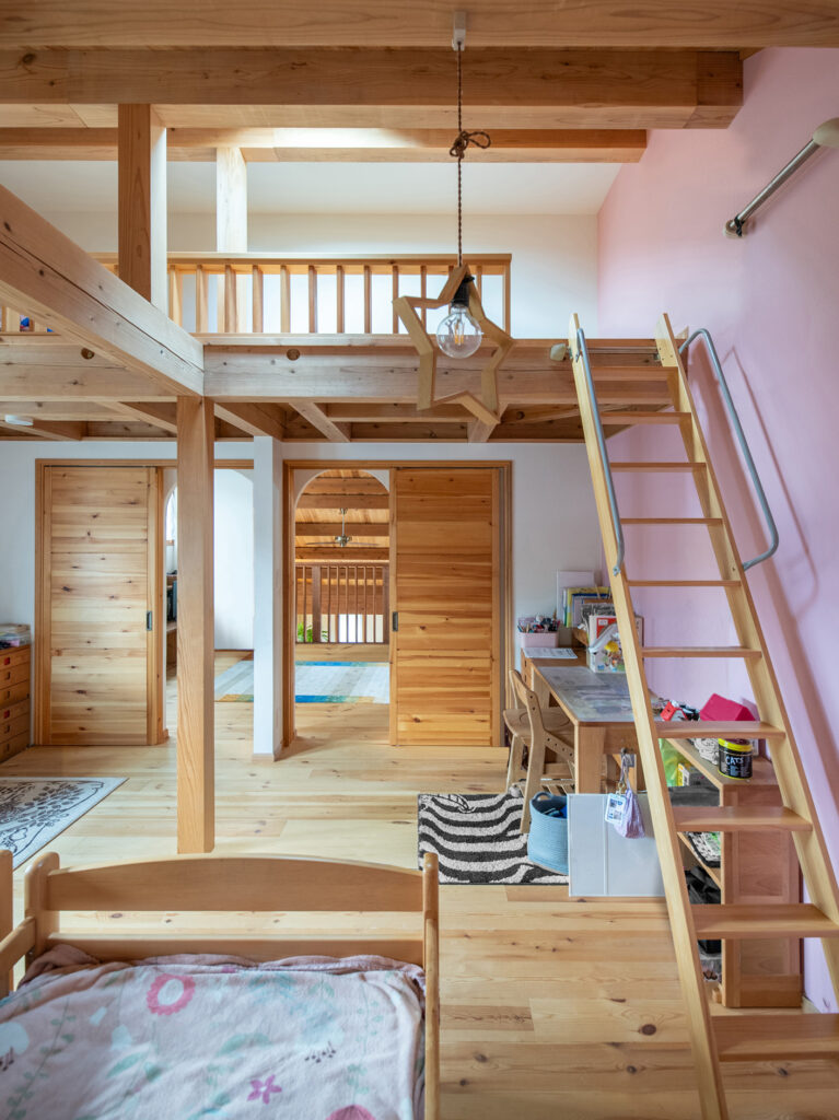 家全体は大きな空間でありながらも、個々がこもれる居場所も。