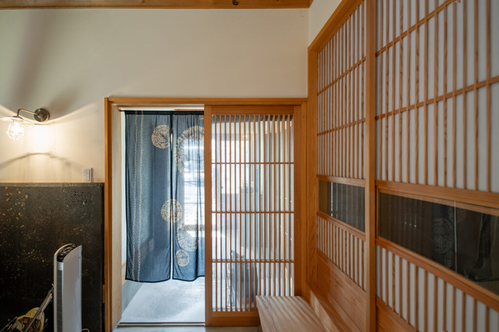 ・事務所とダイニングを、町屋を彷彿とさせる土間仕上げに