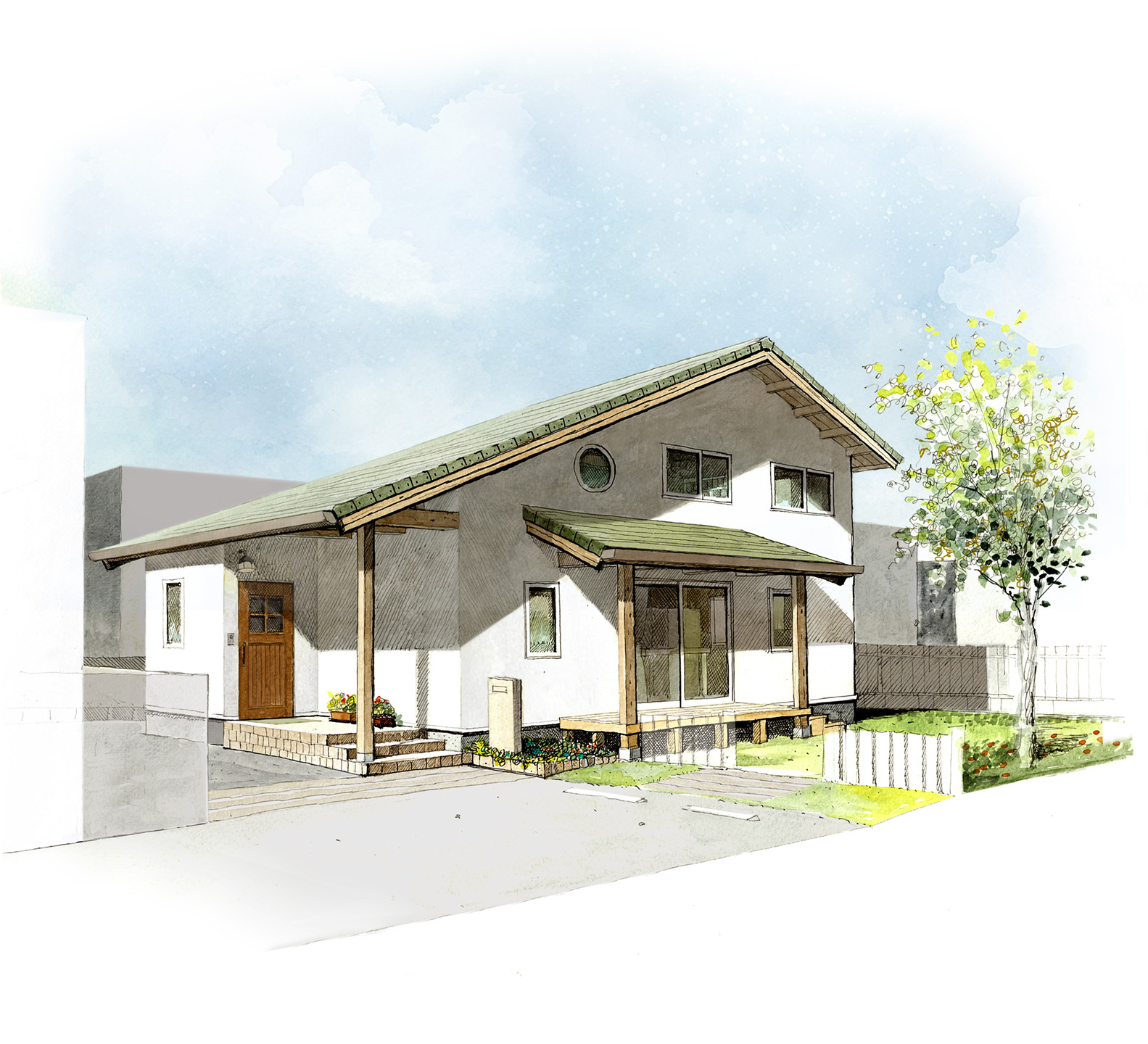 ゆとりある敷地に、家はあくまで我が家のベストサイズに。