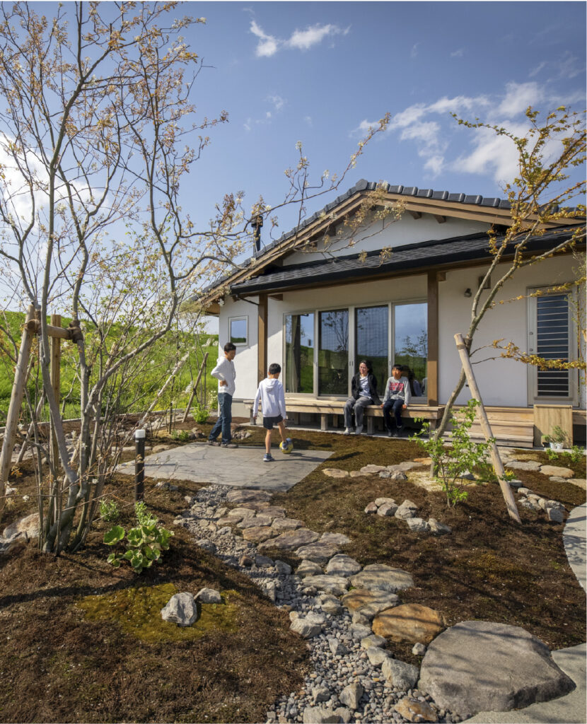 「木のぬくもりを感じる家も、庭も新ストーブも、思い描いていた暮らしをすべて実現することができました」と語る0さん夫妻。木の家と庭とともに育つ、家族の新しい物語が始まっています。