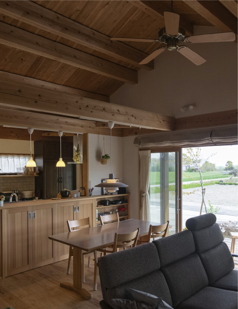 0さん夫妻が家づくりを考えたのは、ご主人のお母さんが亡くなり、お父さんが一人暮らしになったことがきっかけでした。前職は大手ハウスメーカーの設計部員で、そのときに自ら設計して建てた家はまだ築8年。家を手放すのは勇気が入りましたが、隣家が接近しカーテンを閉めての暮らし、木の温もりに憧れていた奥さまとの思いを汲んで決断されました。